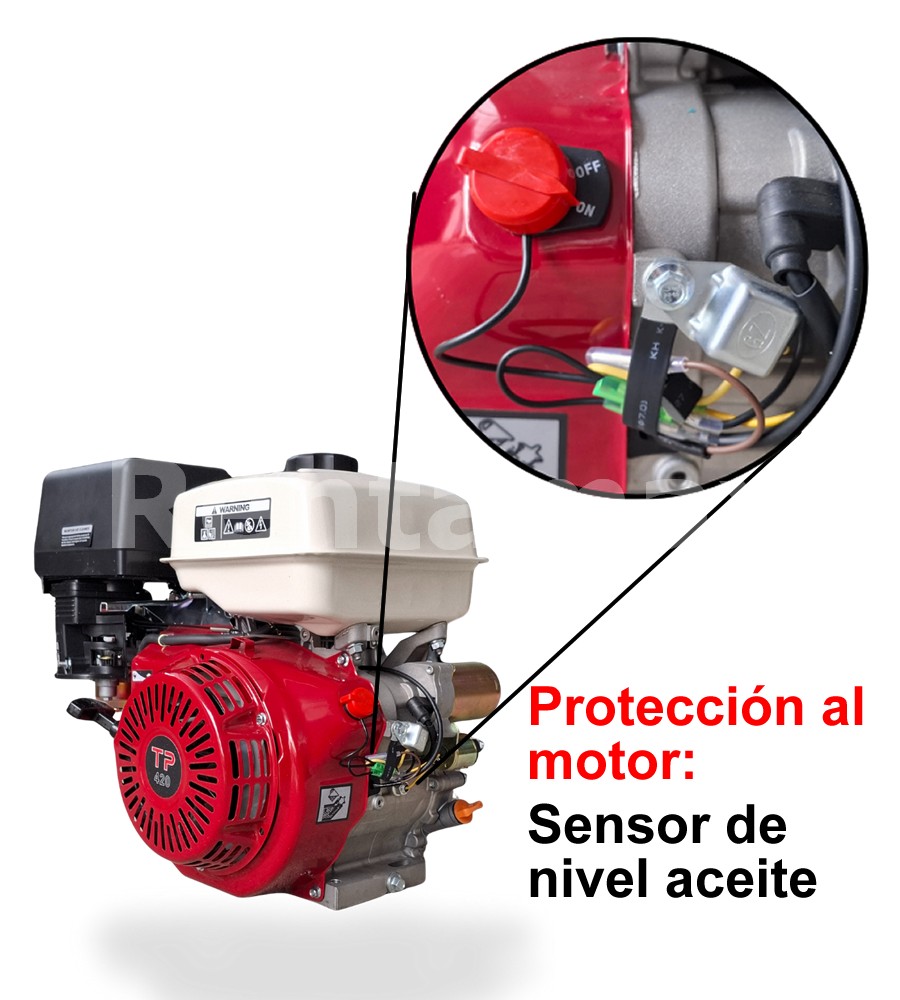Diseño de avanzada con sensor de nivel de aceite que apaga el motor cuando detecta un nivel demasiado bajo de aceite.
