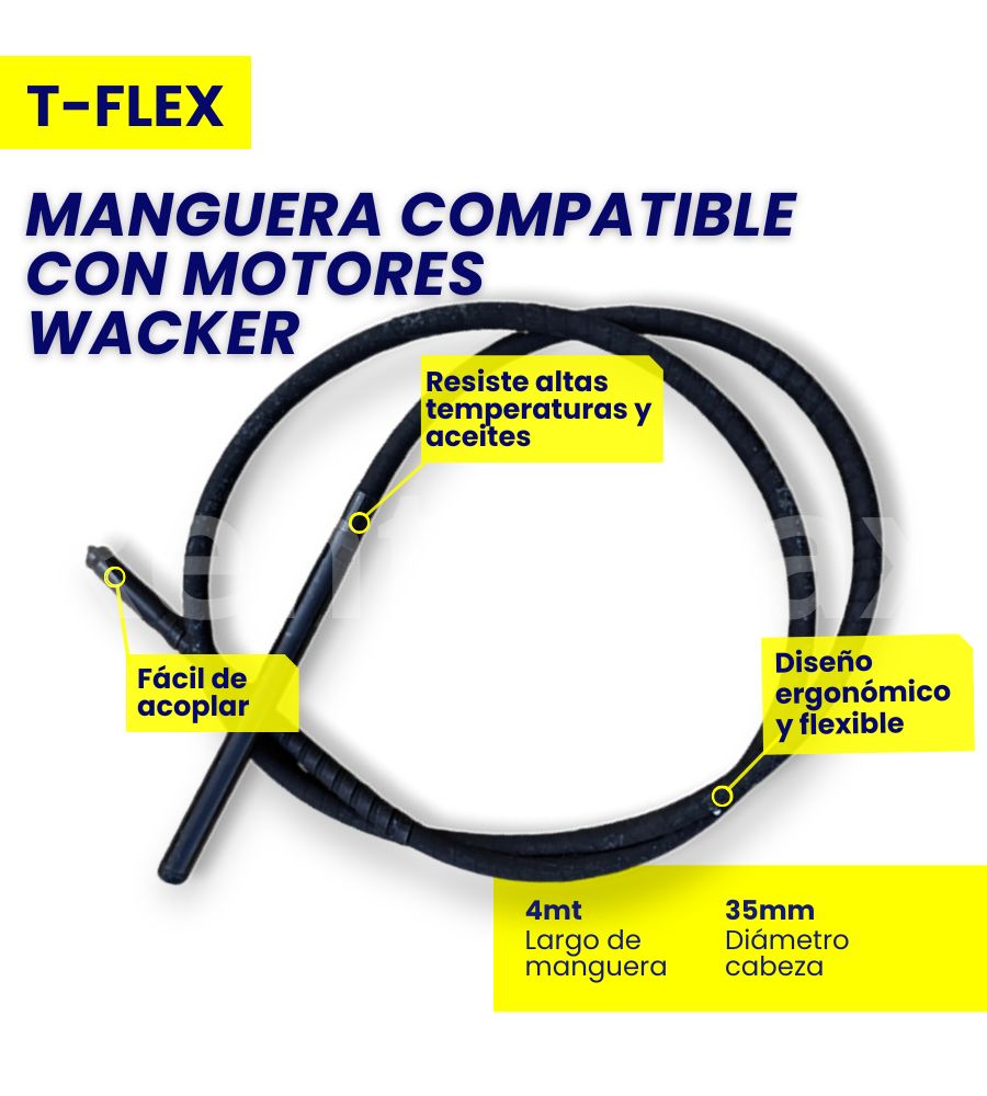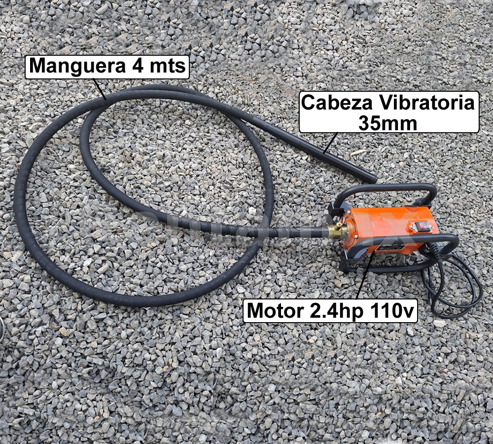 - La manguera y cabeza vibratoria son compatibles con vibradores marca Wacker.