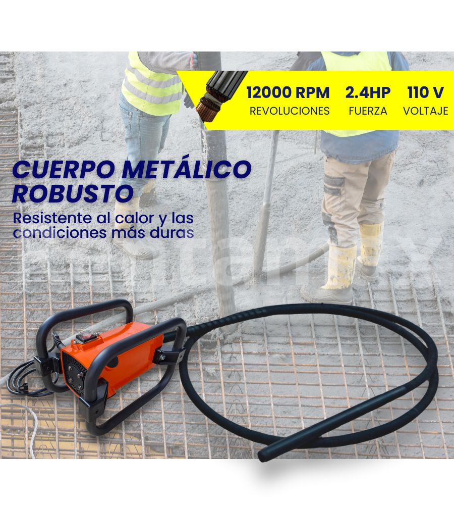 - Vibrador excéntrico de 10,000-12,000 rpm para un excelente vibración del concreto.