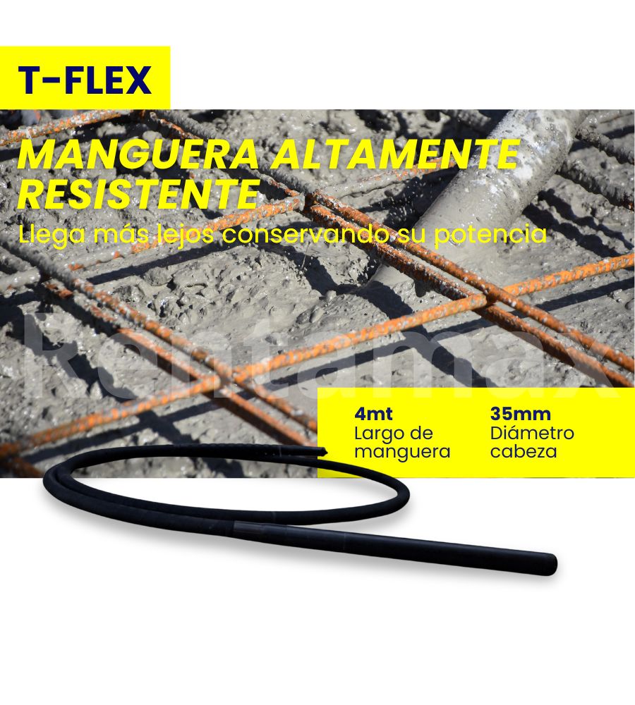 - El eje flexible y la manguera del vibrador, resistentes a altas temperaturas y a aceite.